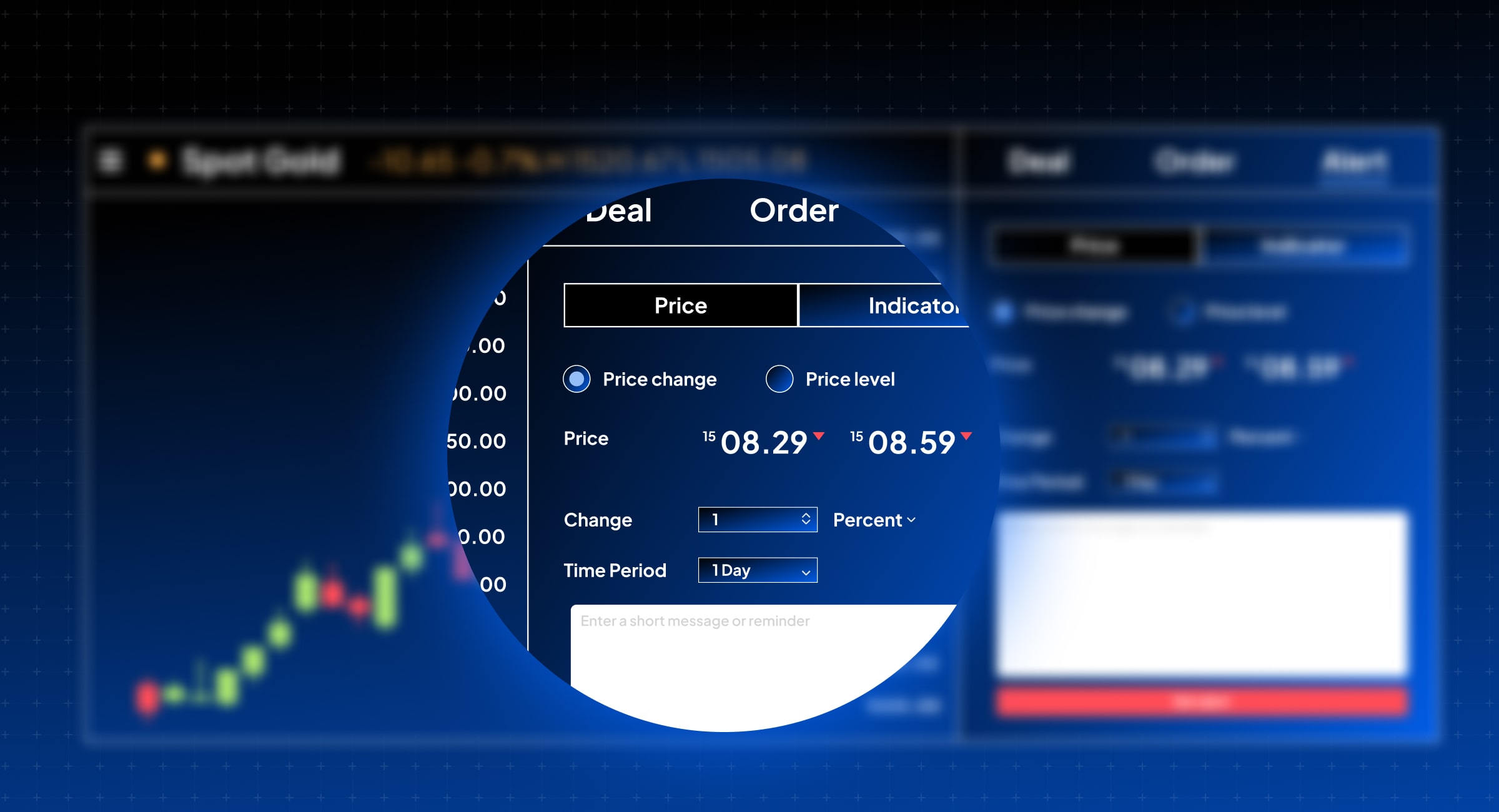 Looking out for specific price action? Set alerts on one or more conditions and receive notification in the platform the moment they are met. You can also opt to set an expiration, and add a description for each alert.